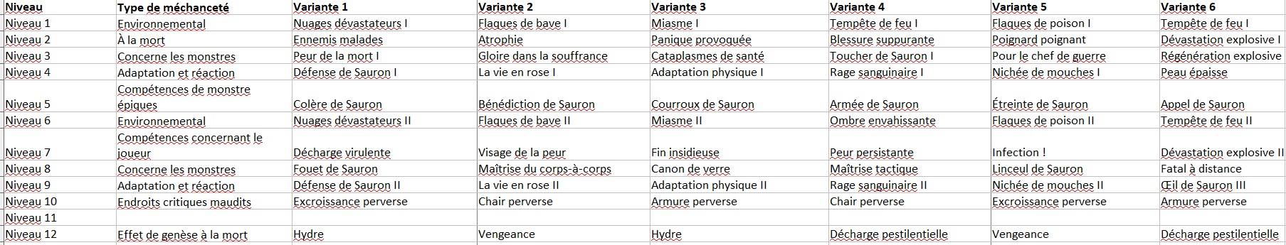 - Modifications des méchancetés : De nouvelles méchancetés, des ajustements aux méchancetés existantes et une rotation plus rapide des méchancetés.